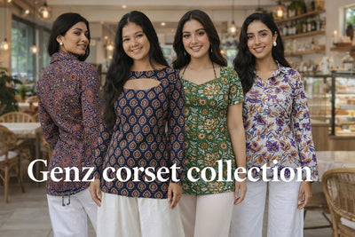 Trending Laila Corset in Pure Handblock Cotton | Adjustable Back Lace & Neck Tie | Sizes XS to 4XL | Handmade by House of the Handblock Jaipur