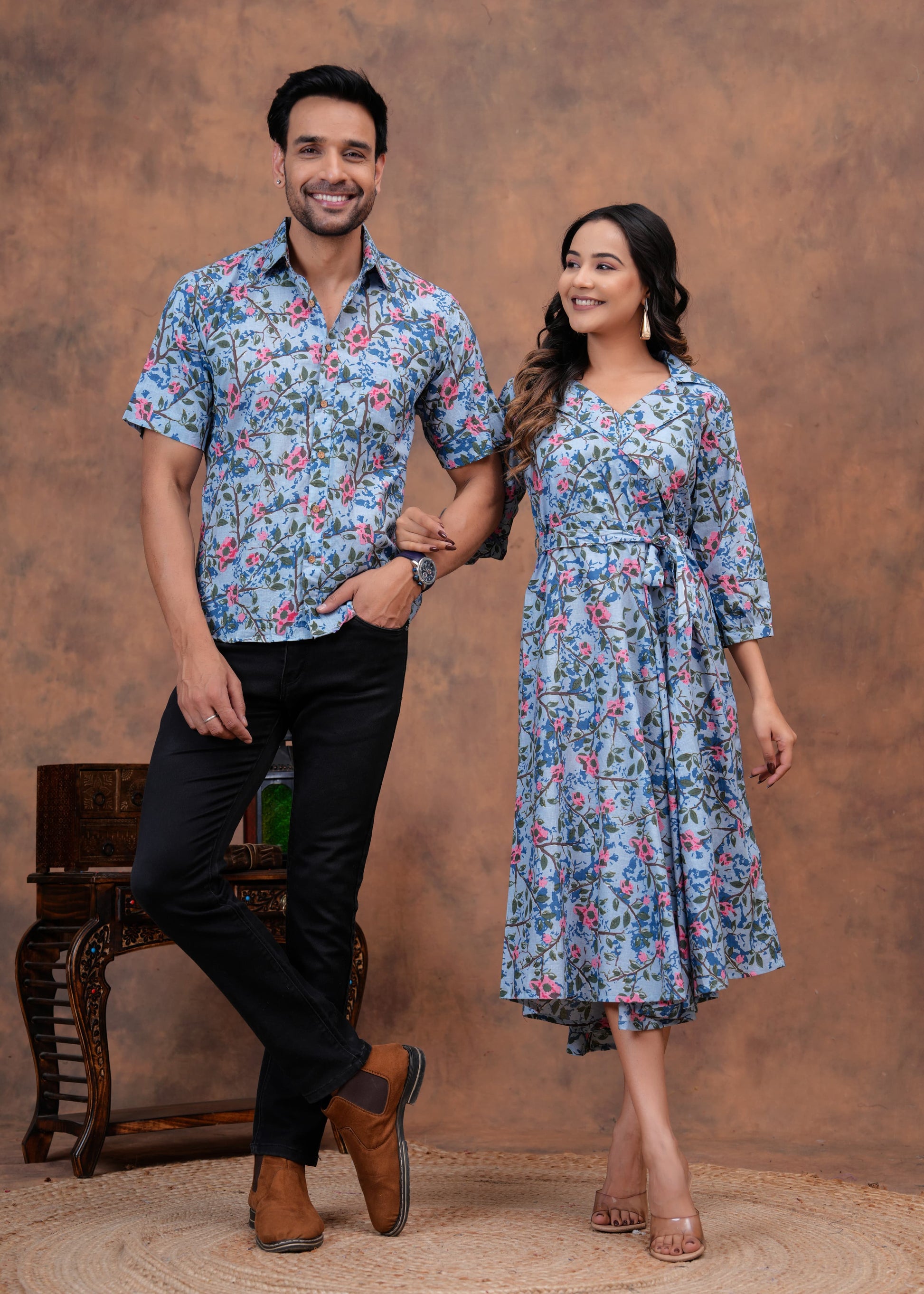 Couple Dress Set – Hand Block Printed Men’s Cotton Shirt & Women’s Midi Dress | House of the Handblock