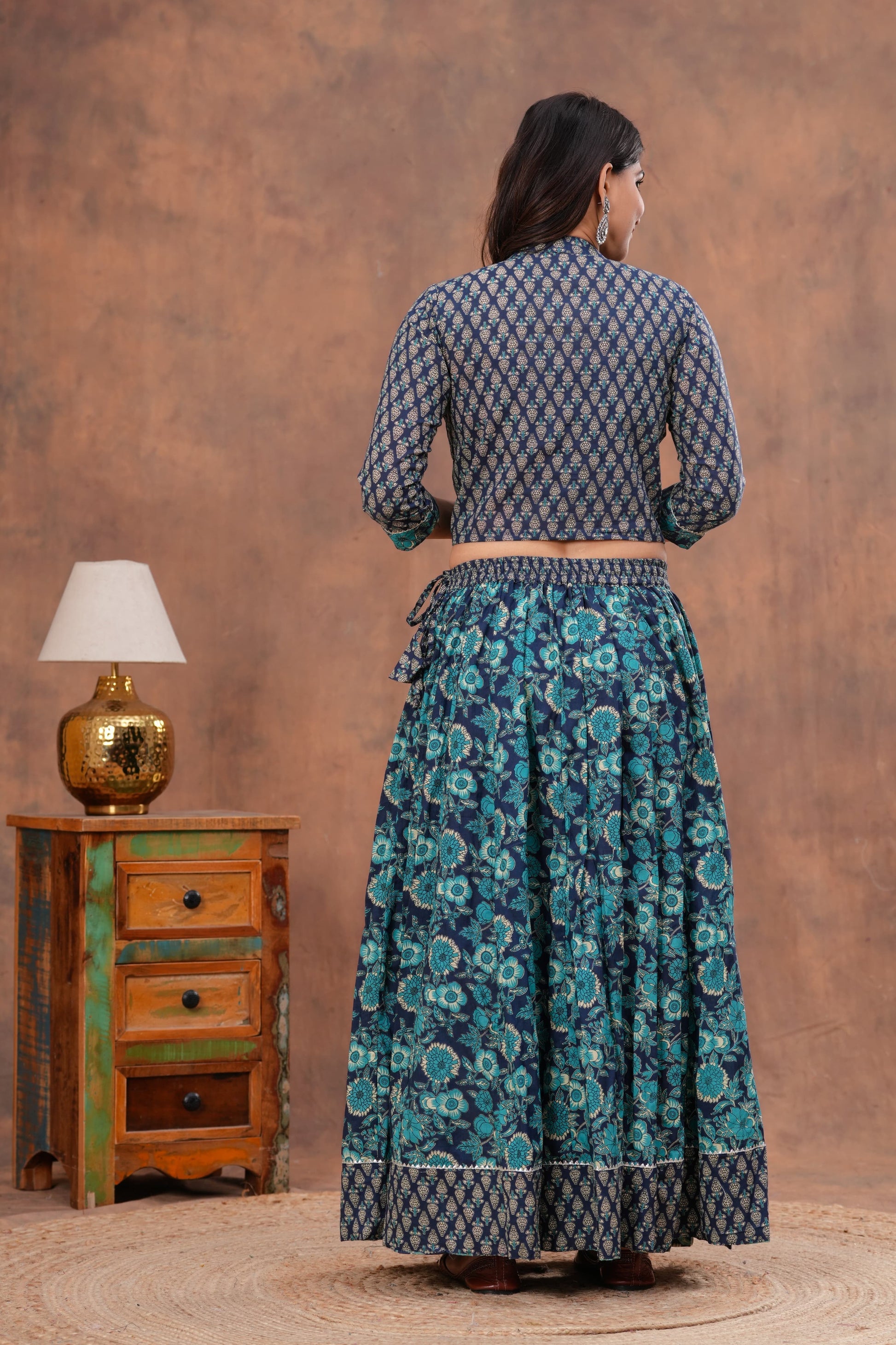 Handblock Printed Cotton Chaniya Choli Set – Designer Top, 28 Kali Skirt & Mulmul Dupatta | SIZE XS to 6XL | House of the Handblock Jaipur