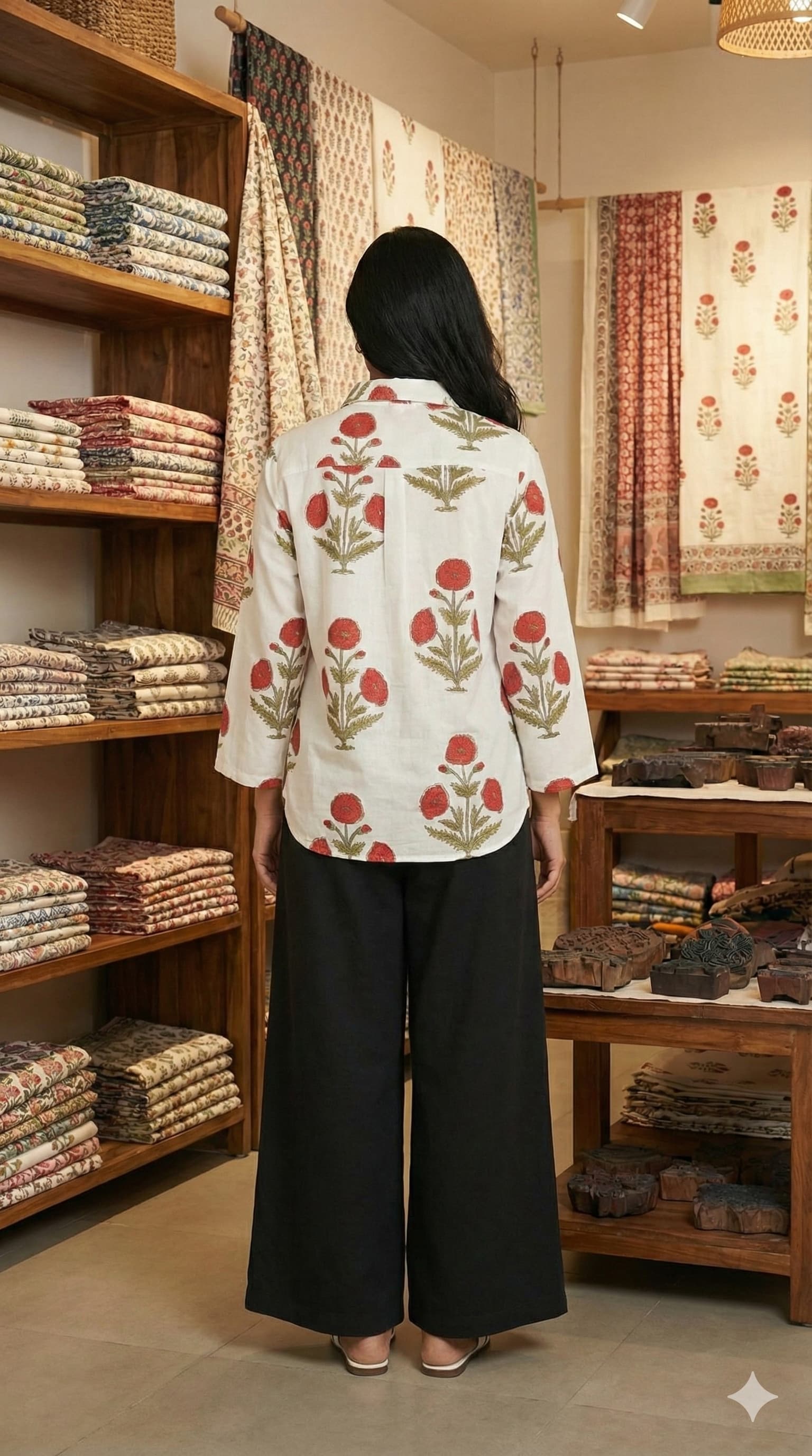Experience everyday elegance with our Handblock Printed Loose Fit Women’s Shirts — crafted lovingly by skilled Indian artisans.