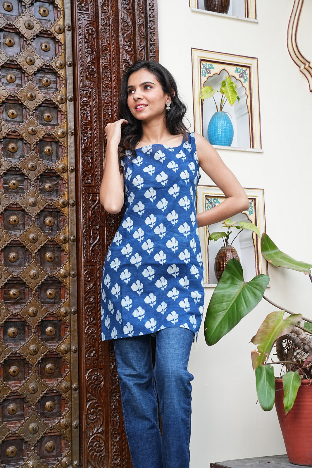 Sleeveless Handblock Cotton Short Tunic – Ethical & Comfortable Outfit