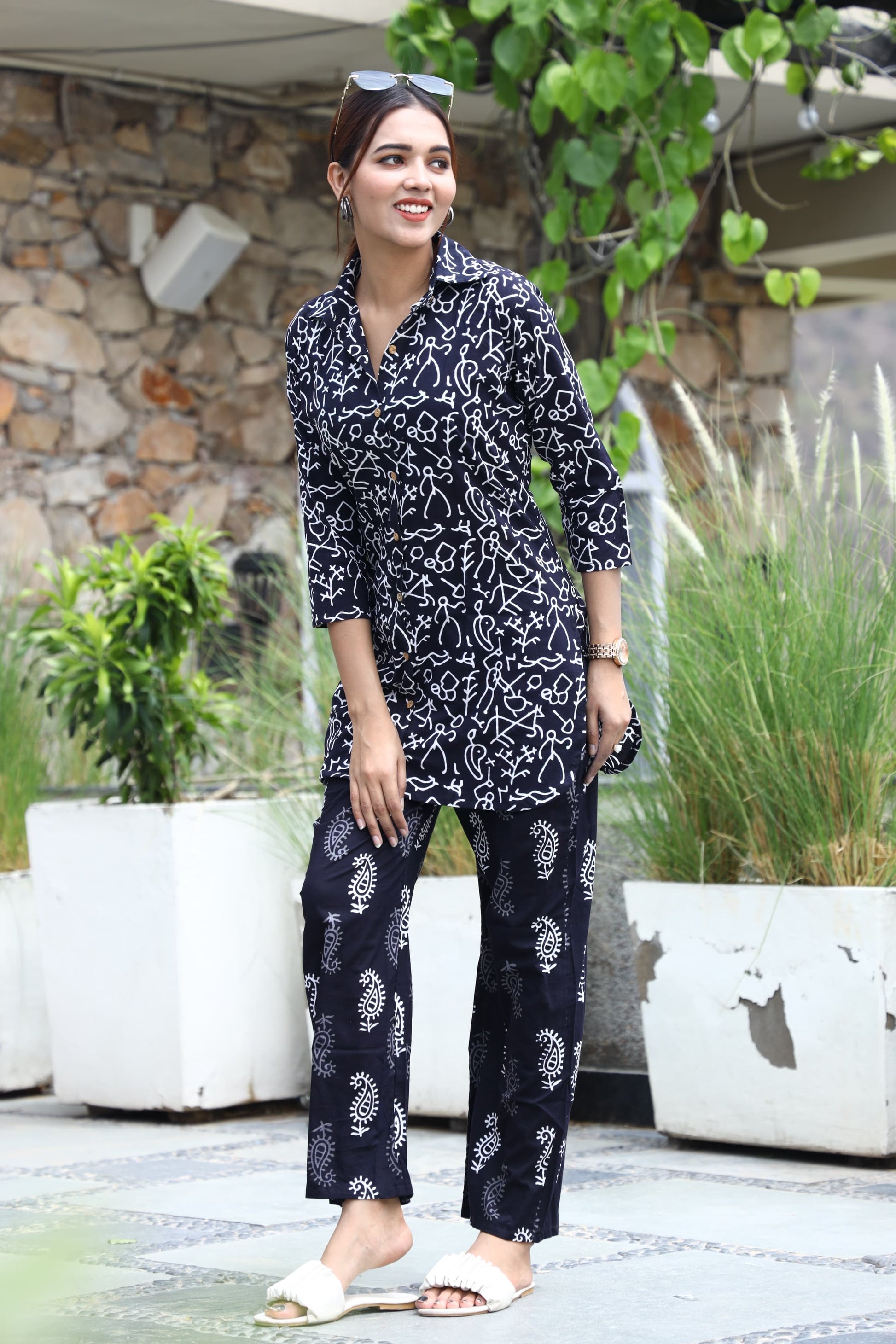 Smart Fit Handblock Printed Co-ord Set – Collar EditioN