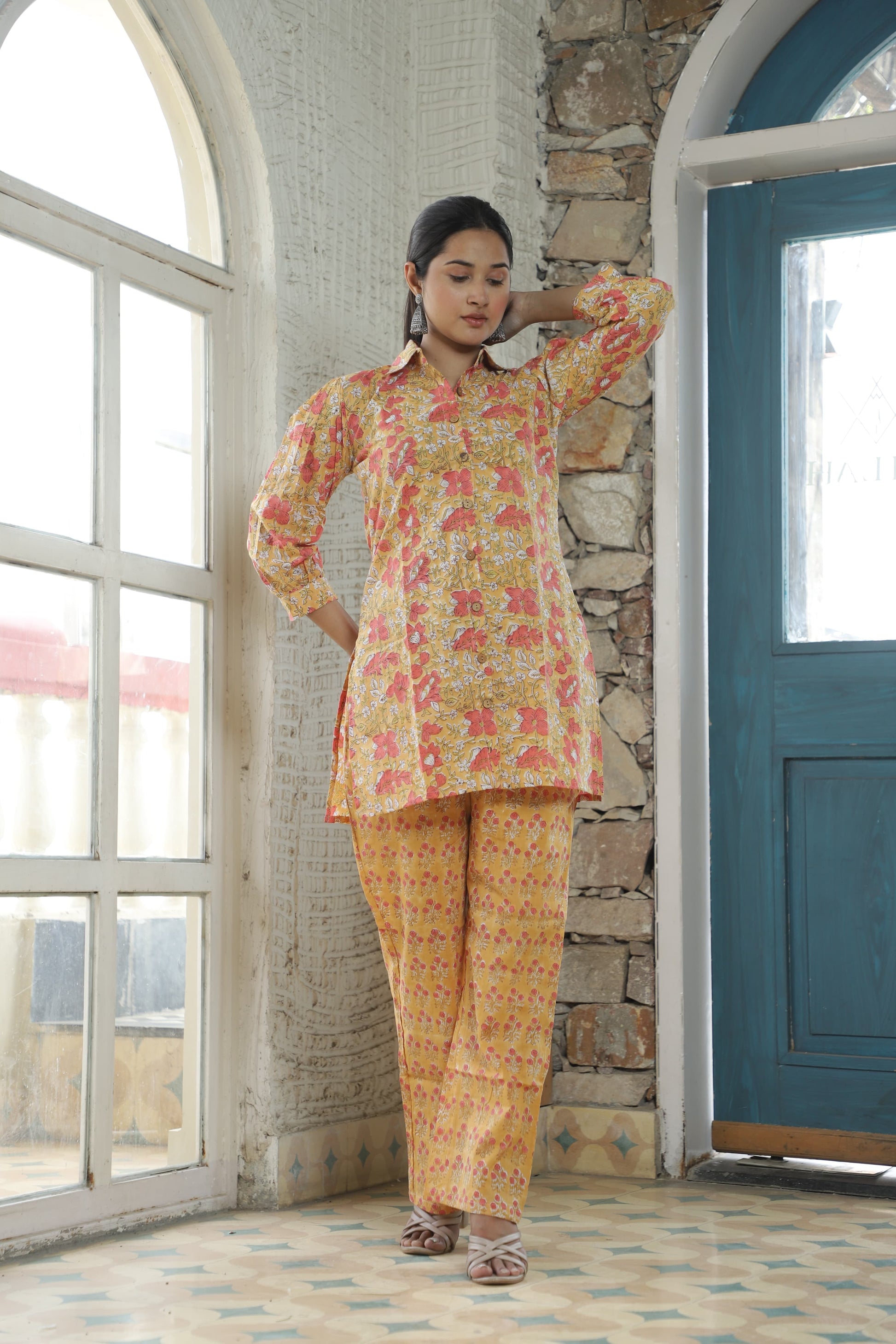 Smart Fit Handblock Printed Co-ord Set – Collar Edition