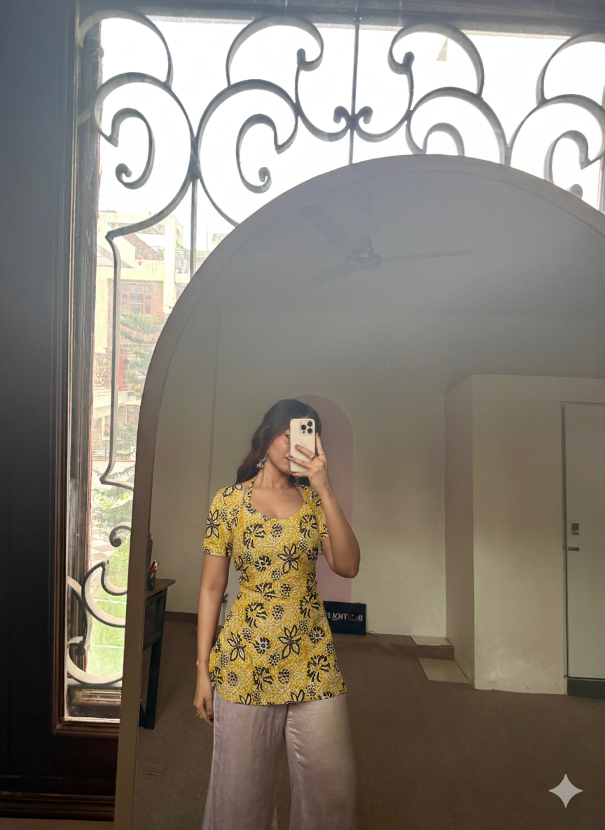 Crop top ka fabric bohot hi soft aur breathable hai. Jaise hi pehna, feel hua ki pure cotton hi hai. Handblock print classy lag raha tha — casual wear ke liye best!"